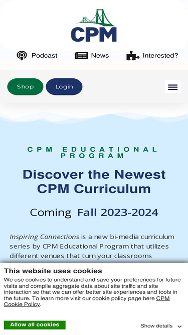 92%Inspiring Connections is CPM Educational Program's newest middle school curriculum, a multimodal program designed as a blend of print and digital materials.