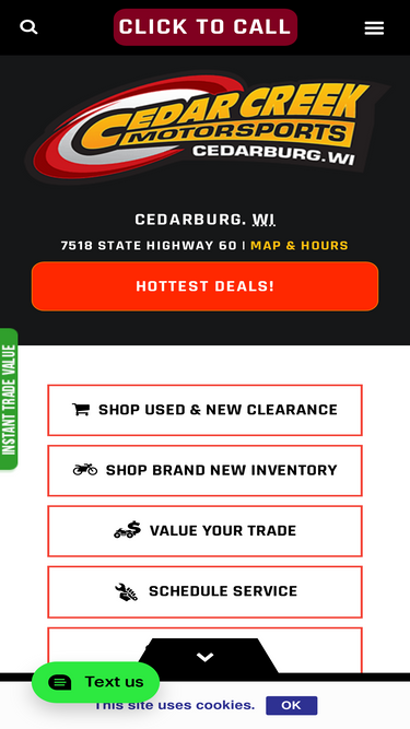 cedar creek motorsports in cedarburg, wi, is wisconsin's largest powersports dealer who sells new and used motorcycles, atv, utv, jet ski, spyder, switch pontoon, slingshot. dealer for honda, kawasaki, polaris, husqvarna, ski doo, sea-doo, can-am, cfmoto. oem and aftermarket parts, repair shop near milwaukee wi, green bay, madison wisconsin and chicago il