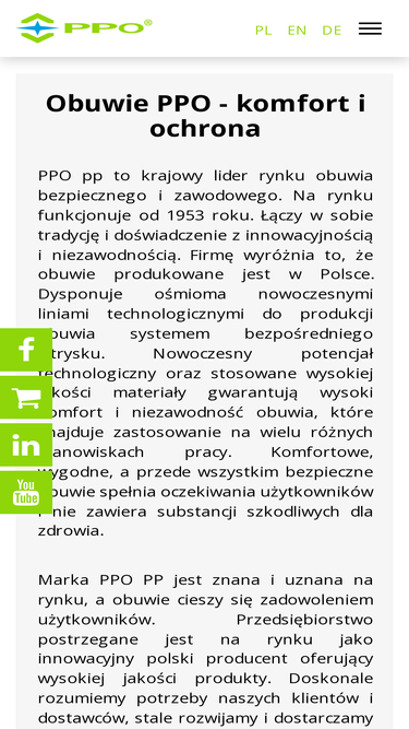 60%firma ppo pp jest polskim producentem butów roboczych, obuwia zawodowego i bezpiecznego, funkcjonującym od 1953 roku. w swoim asortymencie posiadamy: buty robocze antyelektrostatyczne, obuwie ochronne dla kobiet i mężczyzn. wybierz bezpieczne buty!