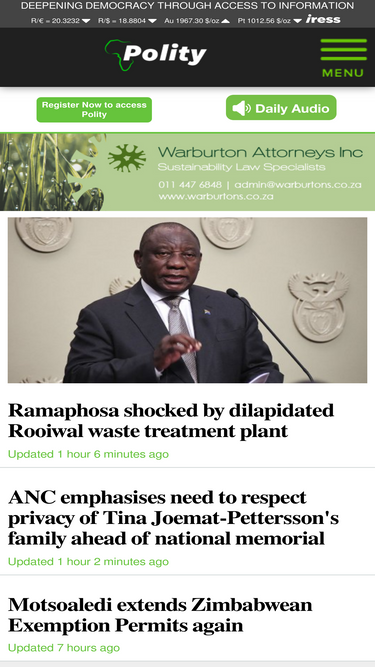 99%Polity.org.za offers a unique take on news, with a focus on political, legal, economic and social issues in South Africa and Africa, as well as international affairs. Polity strives to provide our readers reliable and objective reporting on important issu