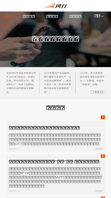 66%北京风行在线技术有限公司(简称“风行”)于2005年9月成立。十四年来,风行经历从pc、移动到ott,实现了互联网、文娱和实业的跨域深度融合。2018年面向产业互联网,风行重塑企业使命为“让内容流动更简单”,致力于成为一家“专业的全渠道内容运营服务商”