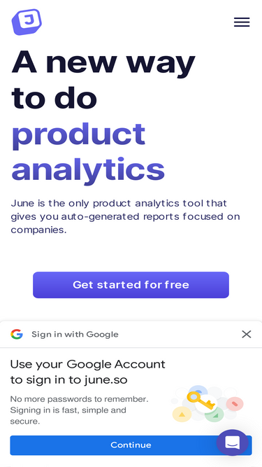 85%June is product analytics software for B2B SaaS. Through the platform you'll get auto-generated reports for customer analysis focused on how companies use your product