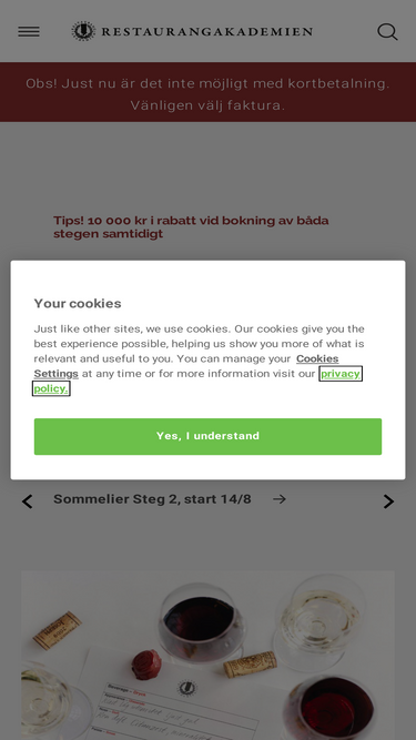 87%Gå en vinkurs och utveckla din vinkunskap på Restaurangakademien. Vi har flera dryckeskurser för dig med stort vinintresse. Läs mer och boka en plats här! →