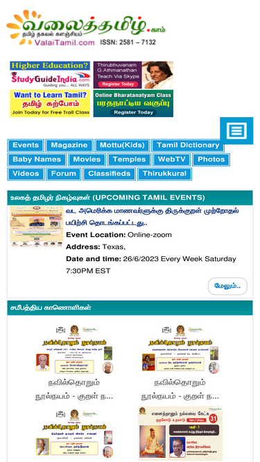 100%ValaiTamil is a Tamil Portal offering online tamil news, movies, blogs, bookmarks, pictures, astrology, videos, art culture, literature, sports, recipes, kollywood, chennai classifieds, business, latest Tamil Nadu politics and more