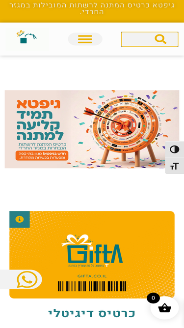 76%גיפטא Gifta כרטיס מתנה לרשתות המובילות במגזר החרדי! מתנה מושלמת לכל אירוע! לבחירתכם כרטיס פיזי או דיגטלי :)