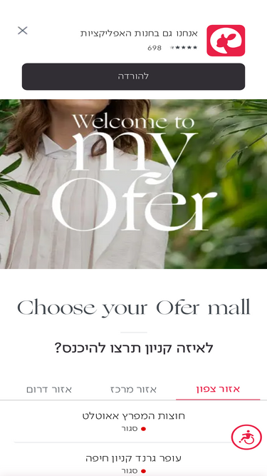 92%my ofer הוא מועדון הטבות של קניוני עופר, קבוצת הקניונים המובילה בישראל, המעניק לחבריו הטבות ומבצעים ייחודים לשימוש בקניונים, באתר ובאפליקציה. היכנסו והצטרפו!