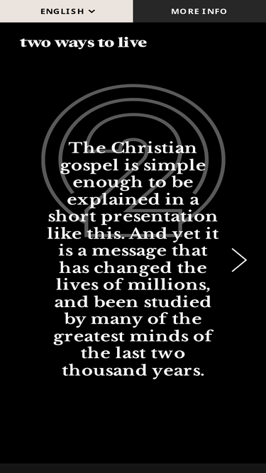 100%A simple presentation of God's message of hope to his world through the life and work of Jesus Christ. Everyone must decide how to respond.