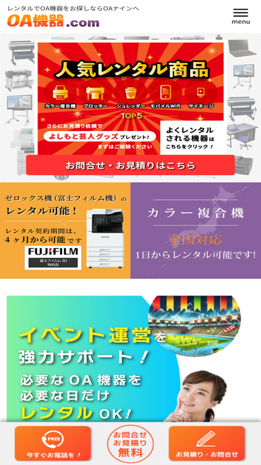 80%コピー機・複合機などoa機器レンタルなら短期1日可、全国レンタル可能なoa機器.comへお任せください。期間限定の工事現場、選挙事務所、イベント会場から一般オフィスのレンタルまで、さまざまなご要望にお応えします。