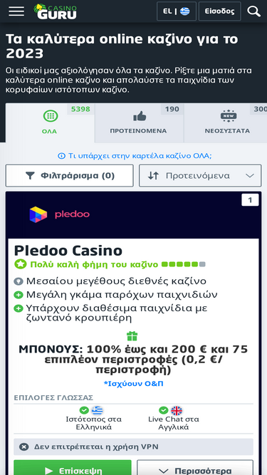 81%Οι ειδικοί μας αξιολόγησαν όλα τα καζίνο. Ρίξτε μια ματιά στα καλύτερα online καζίνο και απολαύστε τα παιχνίδια των κορυφαίων ιστότοπων καζίνο.