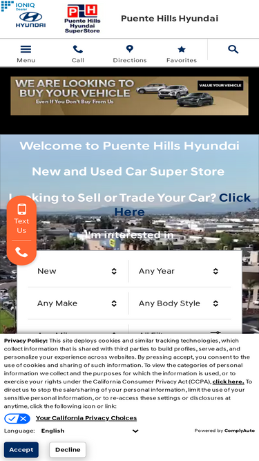 85%our puente hills hyundai dealership is located in the heart of los angeles county, ca. we have a wide variety of new hyundai cars, trucks & suvs to pick from. visit us in the city of industry today!