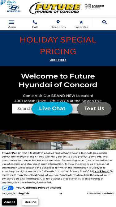 87%buy or lease a new hyundai model at future hyundai of concord. apply for auto financing, compare prices or get car repairs at our hyundai dealer in concord, ca.