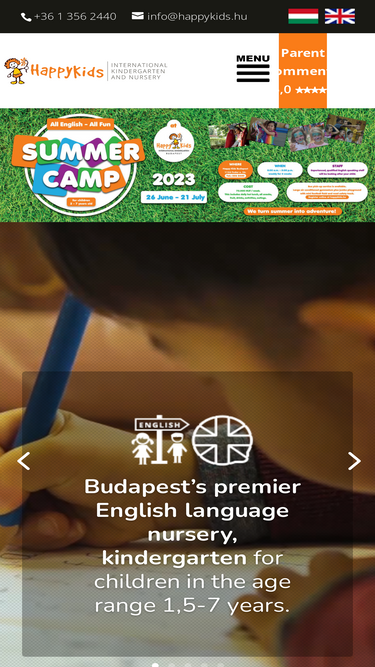 92%Happy Kids Budapest első számú nemzetközi és angol óvodája és bölcsődéje 1,5-7 éves gyermekek számára. Ugyanaz a célunk: boldog gyermekek angol nyelv tudással.