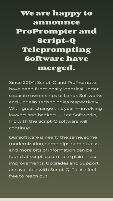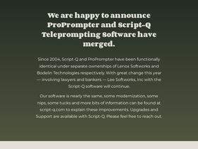 propromptersoftware.com ranks as the 4th most similar website to presentationprompter.com and script-q.com ranks fifth in February 2026.
