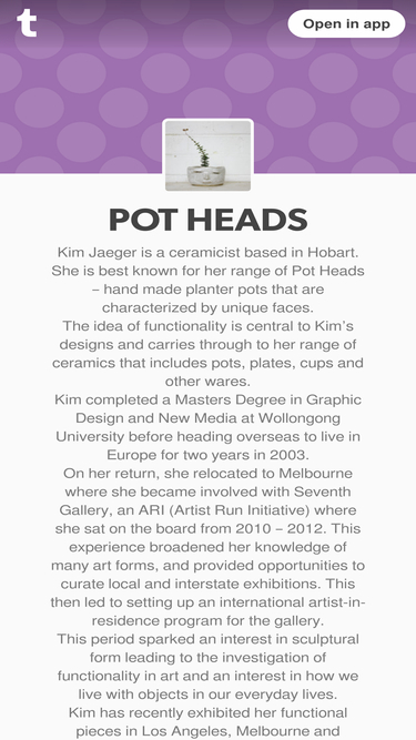 97%i grew up on the south coast of nsw in a small seaside town, spent some time living overseas and then moved to melbourne in 2006. i’ve always made art. i’ve had solo and group exhibitions nationally...