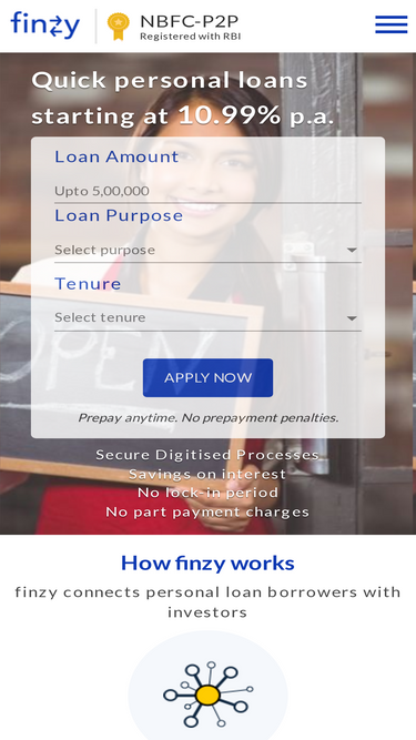 89%Borrow instantly with Finzy - India's RBI-registered P2P platform offering quick, affordable, transparent loans with easy EMIs.