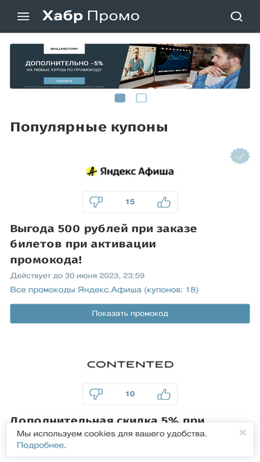 98%наш сайт промокодов хабр поможет тратить меньше на покупках в интернете. экономь благодаря бесплатным купонам на habr, которые мы собрали на своих страницах. у нас только актуальные скидки и акции, которые будут полезны.