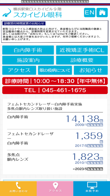 82%横浜駅東口(横浜そごう横)スカイビル眼科は年中無休(休日診療)朝10時から夜18時半まで眼科診療
