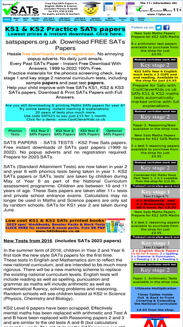 89%Download 2016 KS1 & KS2 SATs Papers. 2016 SATs - Reading, Arithmetic, Scaled Scores, Audio & More. Free Download - Boost Confidence & Marks!