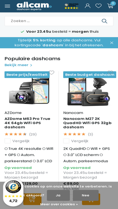 85%Een achter camera voor een dashcam kun je gebruiken om ook achter de auto op te nemen zodat een groter gedeelte rondom de auto wordt opgenomen.