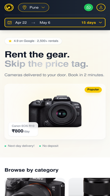 81%Get high-quality cameras, lenses, and accessories on rent.Flexible rental plans, top brands, and easy booking for photographers, filmmakers, and content creators. Shoot without limits!
