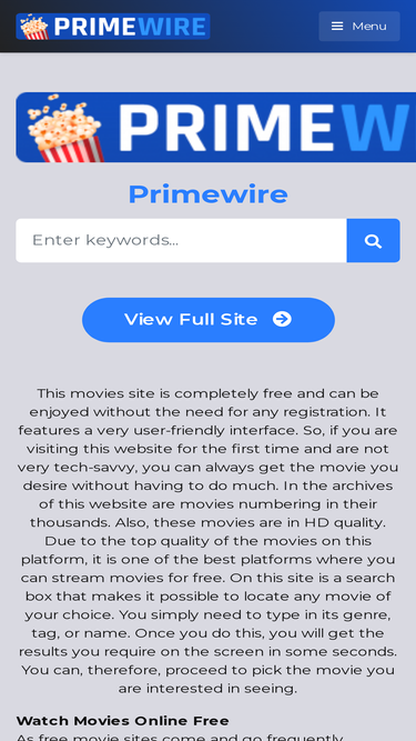94%New Primewire is completely free and can be enjoyed without the need for any registration. It features a very user-friendly interface. So, if you are visiting this website for the first time and are not very tech-savvy, you can always get the movie you desire without having to do much.
