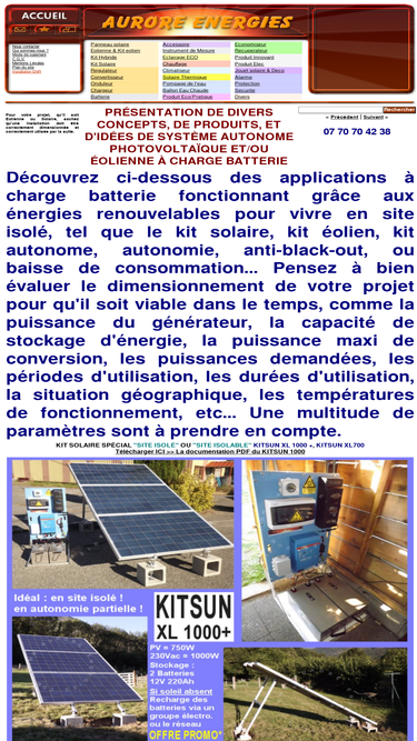 100%kit solaire autonome 230v - présentation de produits et concepts enr nouveaux, kit solaire pour site isolé, kit hybride, information pour l'installation solaire, documentation pour la réalisation d'installation solaire photovoltaïque autonome ou d'équipement fonctionnement aux énergies renouvelables diverses