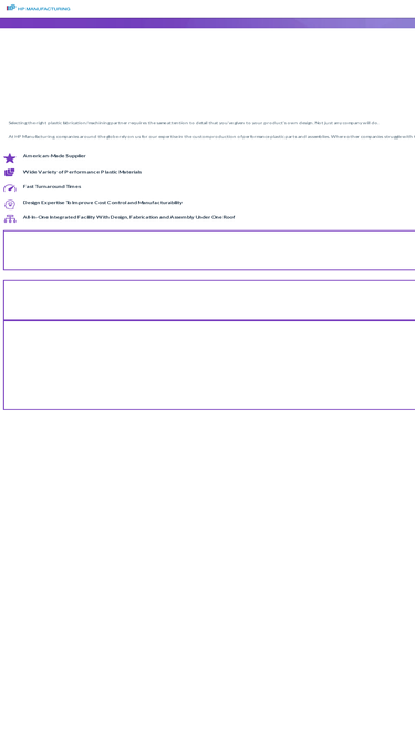 100%hp manufacturing is a worldwide supplier of custom machined plastic products, assemblies & point-of-purchase displays. questions? call (216) 361-6500