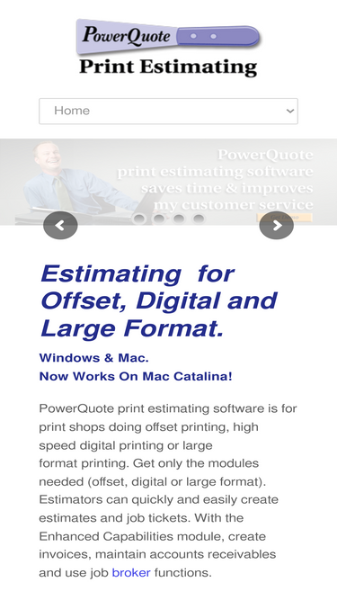 85%Print estimating software for print shops. Printing Estimating modules for offset, digital & large format. Easy to use and setup is quick. Mac and PC.