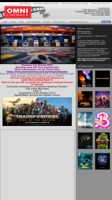 87%Address: 3729 Sycamore Dairy Road, Fayetteville, NC 28303 Omni Cinemas 8: 910-487-5529Omni Family Amusement Center: 910-864-1307Mountasia Fantasy Golf & ...