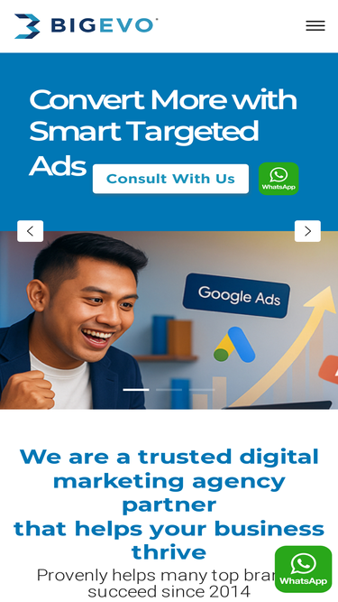 75%Optimalkan performa iklan Anda dengan berbagai paket Google Ads dari BigEvo. Raih lebih banyak leads & penjualan dengan strategi digital yang efektif.