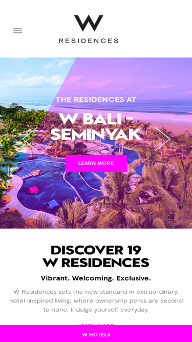 W Residences sets the new standard in extraordinary, hotel-inspired living, where ownership perks are second to none. Indulge yourself everyday.
