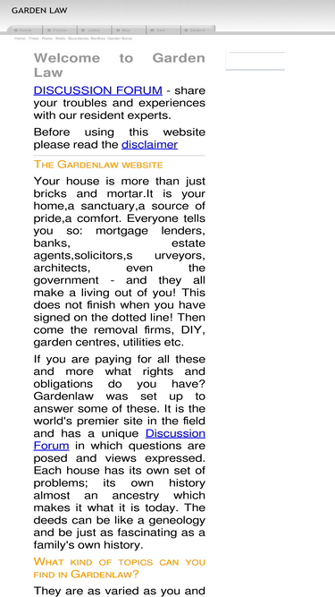 59%garden law:a web page covering legal issues relating to walls,boundaries,trees,hedges,pets and neighbours together with a garden chat page to share your experiences