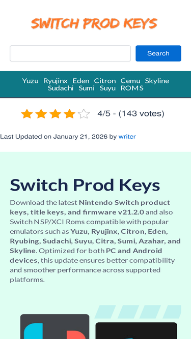 87%Welcome to GetProdKeys, the most trusted resource for Nintendo Switch prod.keys, title.keys, and firmware for emulators like Yuzu, Ryujinx, Skyline, and