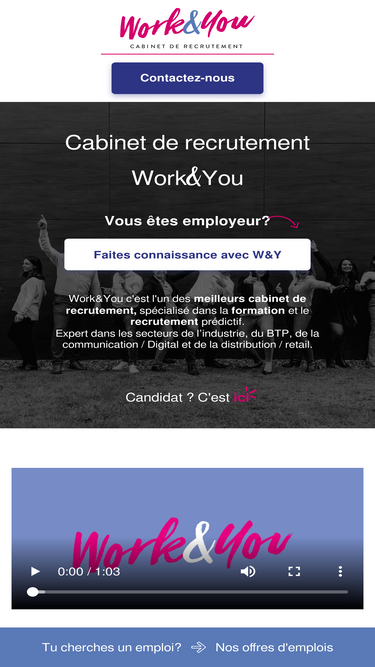 95%Découvrez Work&You, le 1er cabinet national de recrutement et de chasseurs de têtes spécialisé dans le recrutement prédictif.