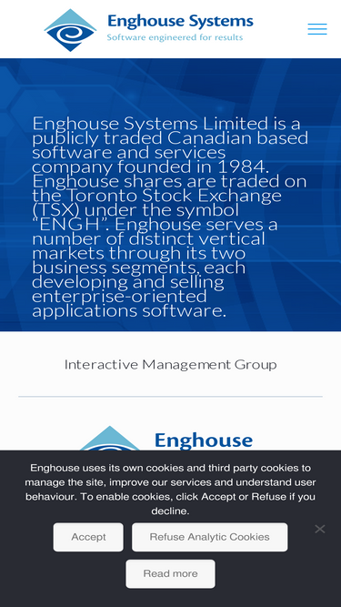 89%Enghouse Systems Limited is a publicly traded Canadian based software and services company founded in 1984. Enghouse shares are traded on the Toronto Stock Exchange (TSX) under the symbol “ENGH”. Enghouse serves a number of distinct vertical markets through its two business segments, each developing and selling enterprise-oriented applications software.