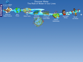 interactive activities about water topics including water cycle, ocean, fresh water, watersheds, water conservation and protection, indirect and direct water use and water and health for elementary and middle school students and their teachers.