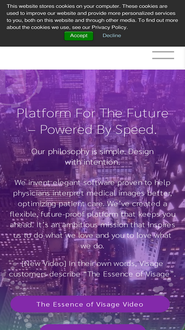 Visage Imaging is a global provider of enterprise imaging solutions that enable PACS replacement with local, regional and national scale.The Visage® 7 Enterprise Imaging Platform is proven, providing a fast, clinically rich, and highly scalable growth platform deliverable entirely from the public or private cloud.