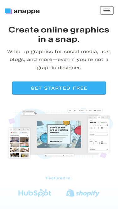 100%Snappa makes it easy to create any type of online graphic. Create & publish images for social media, blogs, ads, and more!