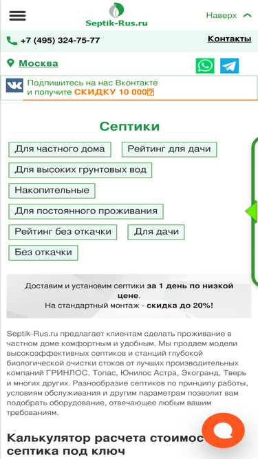 89%На нашем официальном сайте представлен большой ассортимент септиков от лучших производителей. Установка автономной канализации под ключ в Москве за 1 день. Профессиональный подбор и быстрая доставка септиков. Гарантия.