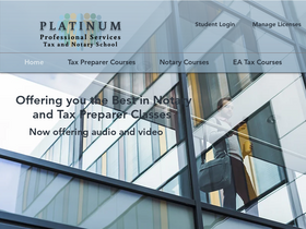 87%Become a tax preparer or notary today with our irs approved tax preparation courses and california notary classes. Platinum Professional Services offers online tax courses and enrolled agent courses.