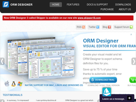 74%orm designer is a visual editor supporting favourite orm frameworks (doctrine orm/doctrine2 orm/propel orm and cakephp). orm designer was created to replace kilobytes of text definitions with easy to use user interface.