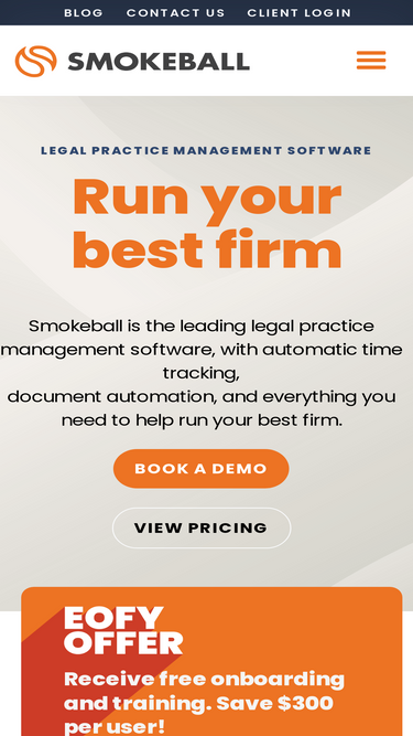 92%Smokeball is the leading legal practice management software, with automatic time tracking, document automation and everything you need to help your run your best firm.