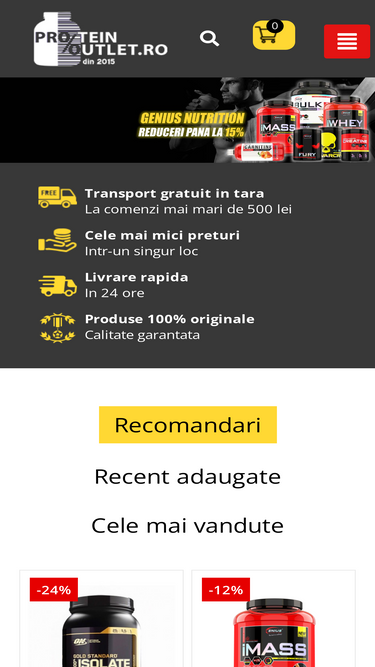 47%Protein Outlet este un magazin online dedicat promovarii si sustinerii fitness-ului si bodybuilding-ului romanesc, alaturi de modul sanatos si activ de viata cu care acestea sunt insotite. Ai reduceri pana la -38% la marci precum: Genius Nutrition, Animal, Universal, Optimum, Dymatize, Nutrex si multe altele
