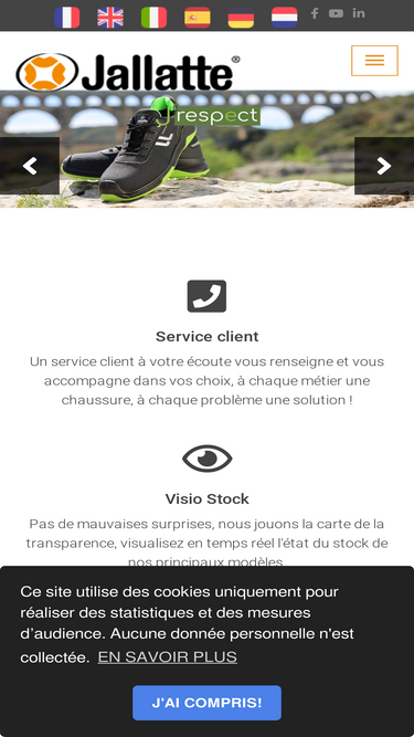 87%jallatte - fabricant français de chaussures de sécurité et bottes pour le btp, industrie, logistique, agroalimentaire, pétrole, tertiaire, métallurgie, hôpital.