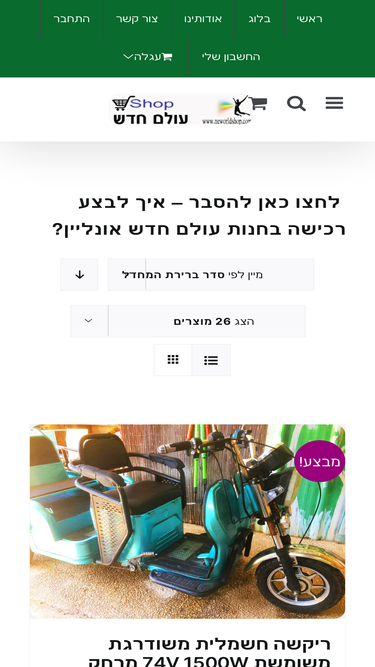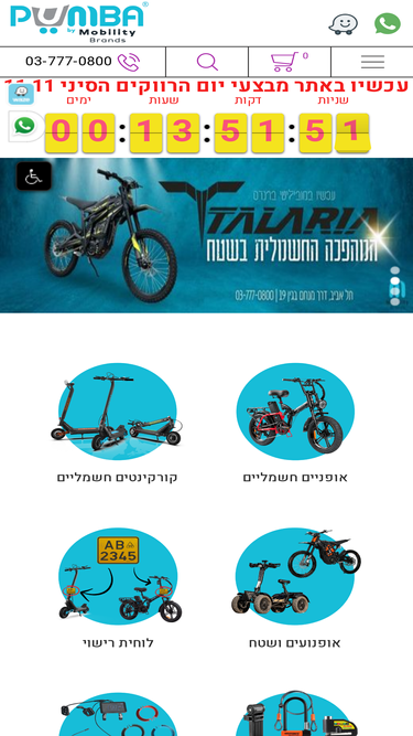 77%אתר הקניות המהיר בישראל - משלוח עד 60 דקות בגוש דן! מבחר ענק של אופניים חשמליים, קורקינטים, ממונעים לילדים, מצלמות רכב, אוזניות, רחפנים, שואבי אבק ועוד. עד 12 תשלומים ללא ריבית.