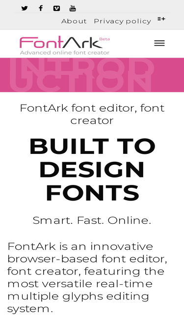 74%fontark is an innovative new browser based online font editor, font creator, featuring a unique real time multiple-character-editing tools.