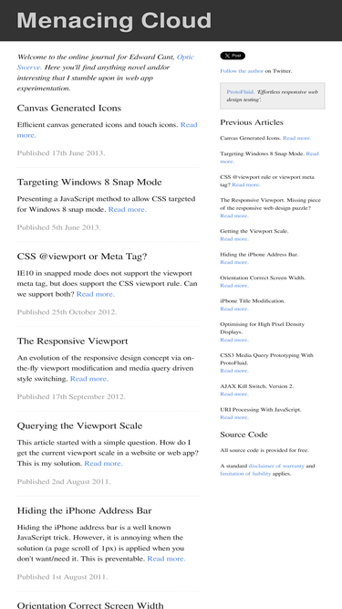 82%menacing cloud. web design and development articles, novel css and javascript tricks.
