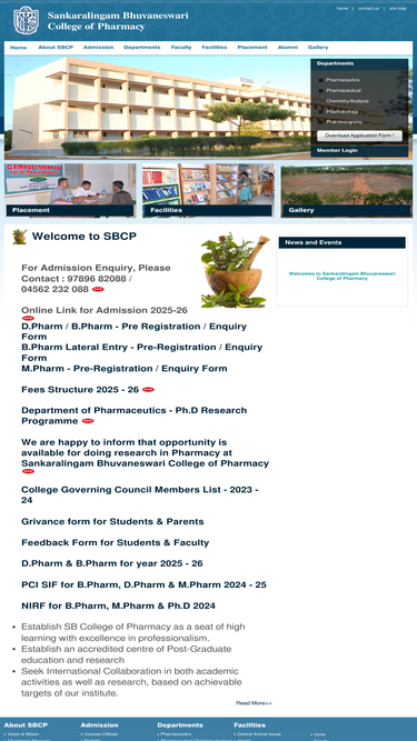 64%sankaralingam bhuwaneswari college of pharmacy offers courses in diploma and degree in pharmacy. the college will shortly offer masters programme on pharmacy. situated in a serene atmosphere and a education friendly location, with all the latest facilities for a well equiped pharmacy college