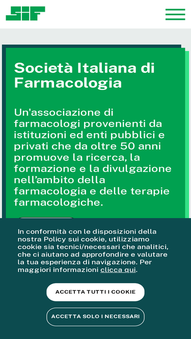 98%Benvenuti sul portale della SIF, i contenuti di questo sito hanno finalità di informazione e divulgazione legate al mondo dei farmaci ed affini