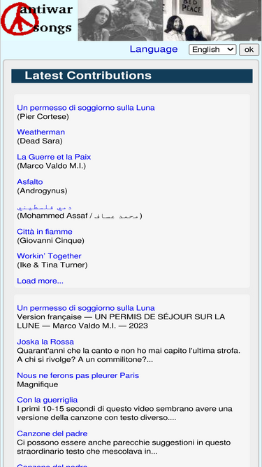 77%A very large Antiwar Song Database